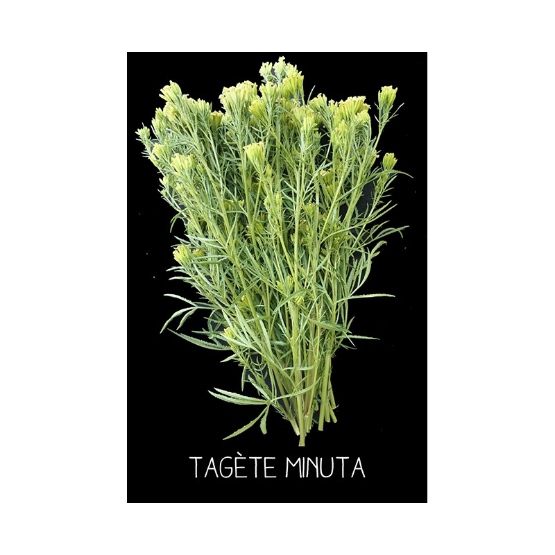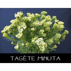 Un tagète spectaculaire avec ses deux mètres de haut et ses fleurs groupées, minuscules au goût d’agrume connue pour ses actions nématicides (tomates).