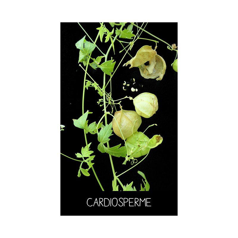 Elégante petite plante grimpante qui fournit un joli feuillage et surtout des fruits comme des vésicules transparentes d’un joli vert tendre. A l’intérieur, quelques graines noires présentent un cœur blanc.