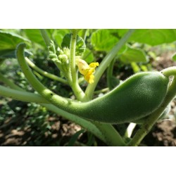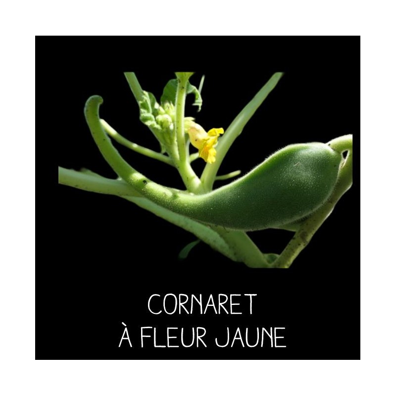 La graine est noire brillante. Le fruit sec est compact. Il est pourvu de poils raides, hirsutes ! La plante est totalement étrange. Elle croît facilement. Les feuilles sont collantes et piègent les petits insectes, la fleur est très belle comme une orchidée. Le fruit se mange comme des cornichons lorsqu’il est très jeune sinon il sert à faire des sculptures incroyables. Le fruit ressemble à une griffe d’insecte constituée de deux coquilles en bois dur. À planter aux quatre coins du potager. C’est une plante qui fait réfléchir.