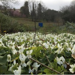 On la connait moins souvent avec des fleurs blanches. C’est un très bon couvre-sol vivace et ses fleurs nacrées ont un parfum très puissant qui démontre qu’il n’est pas dans la couleur. Elle possède des vertus en médecine. A implanter pour couvrir des zones à mi ombre.