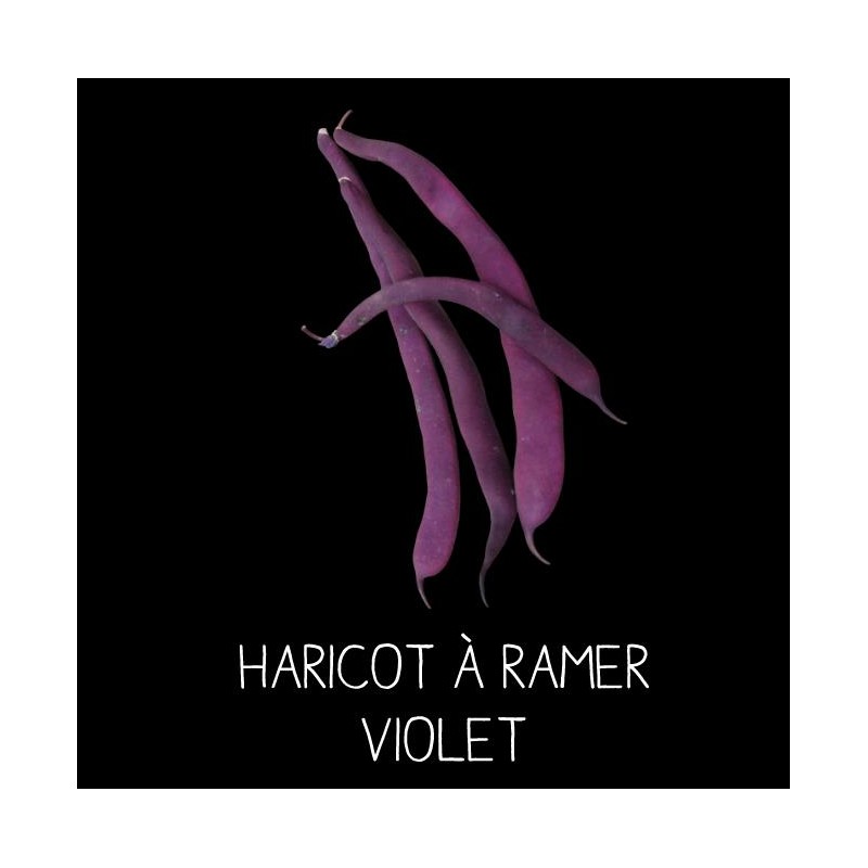 Haricot à cueillir jeune, gousse longue et violette,à croissance rapide.