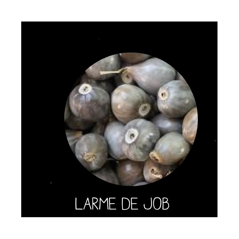 Merci à Manon Monge (jardinière d’un village proche) pour l’avoir cultivée. Cette extraordinaire graminée produit des graines rondes, bleues et percées qui la font s’utiliser pour des colliers, chapelets. Le génie Léonard de Vinci en a fait un dessin au crayon magnifique. On dirait des perles de céramistes !