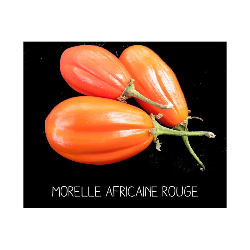 Cette morelle a la particularité d’être verte mûrissant orange, d'un rouge brique exceptionnel. Elle est très rustique, précoce et productive. Elle a un goût puissant et on la consomme verte, pas mûre. C'est la plus proche des aubergines en réalité ! Son amertume se prononce à mesure qu'elle murit comme chez toutes ses cousines. Ce légume est indispensable en Afrique pour les sauces !