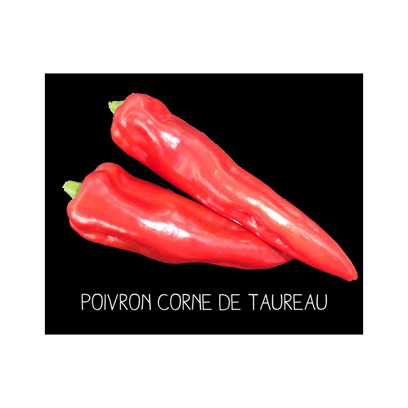 C'est un grand poivron vert mûrissant rouge, qui porte bien son nom, une corne jusqu’à 30cm de long! Il se situe entre Del Piquillo et le poivron d'Algérie, il est bien connu des marchés (c'est une des rares variétés que l'on nomme sur les étals). On aime le préparer en lanières longues. Sa grande taille ne le rend pas très productif ni très précoce, et il faut songer à tuteurer le plant !