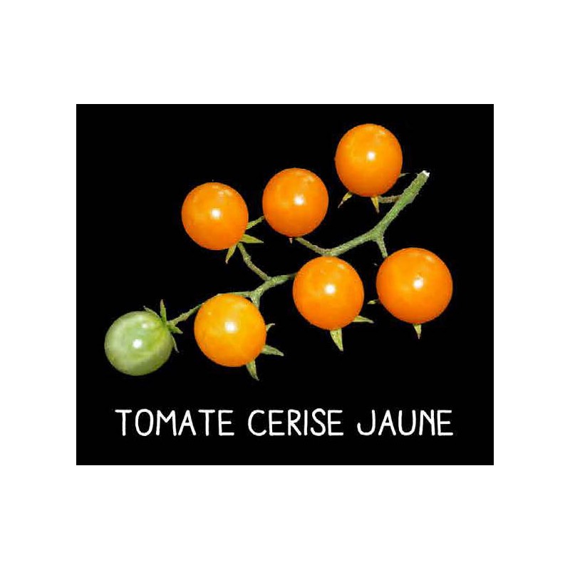 Variété à fruit jaune doré. Elle a les mêmes caractéristiques que «cerise rouge» et elle est précoce. Sa couleur profonde la distingue toutefois des groseilles, mirabelles et prunes qui sont autant de petites tomates jaunes déguisées en fruits des vergers !